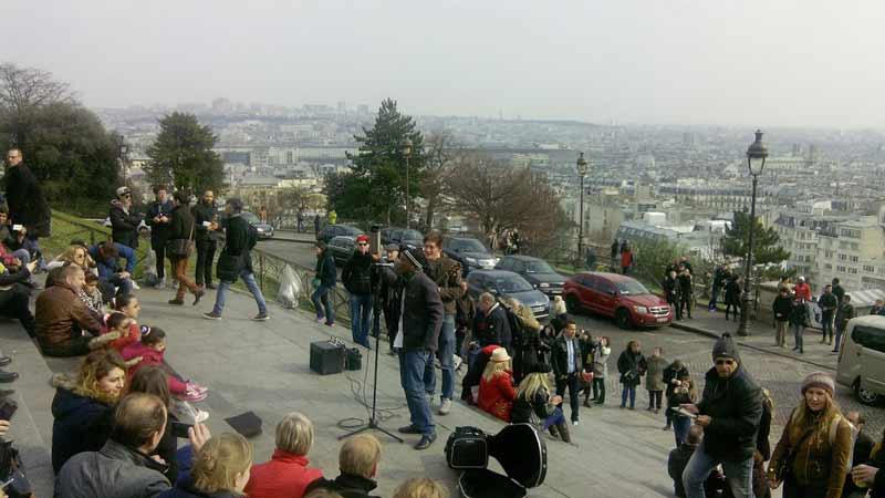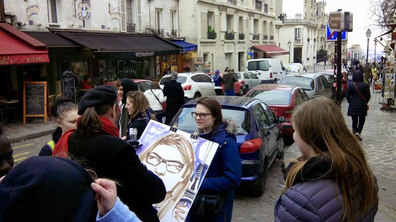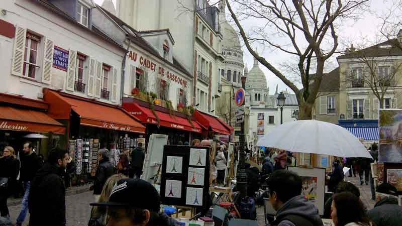 Mbasditja (me metro), vajtje ne Montmartre. Vizite e Bazilikes, sheshit te piktoreve. Pika me e larte e Parisit 130 m mbi nivelin e detit, ku do te vizitohet dhe Basilika Sacré Cœur, nje basilike Romano Bizantine kushtuar Zemres se Shenjte te Krishtit ndertuar pas shkaterrimeve te 1870 prej pushtimit te Parisit prej Prusianeve dhe luftes civile qe pergjaku kryeqytetin.Cdo banor I Parisit ka financuar per ndertimin e kesaj Basilike I cili filloi ne 1873. Po ketu, disa rrugica me larg nga Basilika, do te vizitoni Sheshin e Artisteve ( Place du Tertre ) I cili eshte nje kujtim I kohes kur ne Montmartre linden tendencat e Artit Modern ne fillim te shekullit 20 ku pervec shume piktoreve te varfer ka jetuar dhe Pablo Pikaso. Darka ne nje nga restorantet e lagjes Montamartre.