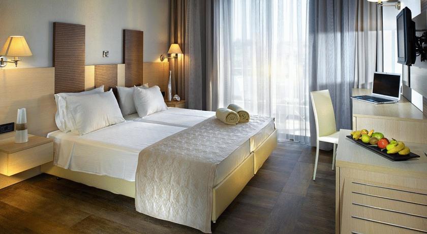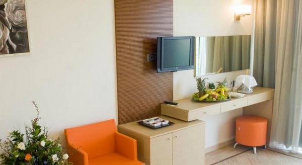 Akomodimi bëhet ne dhoma: Standarte dyshe +treshe : dhoma me ambient te gjere me pamje nga parku I hotelit .Ajeri I kondicjonuar, telefon, tv me satelit, mini bar, pajisje, rroba banjo, batanije luksoze, sherbim I mbasdites, tharese.Superiore dyshe+treshe me pamje nga deti: dhome me pamje nga deti mund te mbaje edhe 3 persona.Ajeri I kondicjonuar, telefon, tv me satelit, mini bar, pajisje, rroba banjo, batanije luksoze, sherbim I mbasdites, tharese .