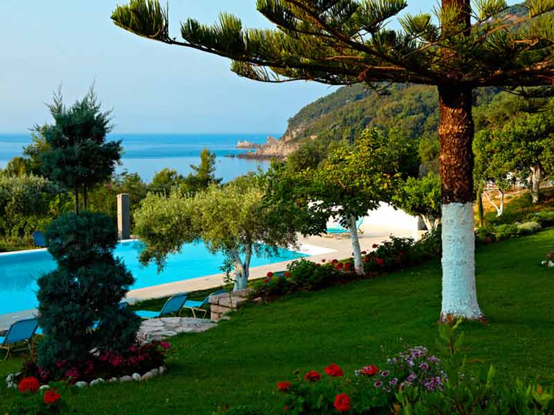 Ky hotel eshte ideal per pushime luksoze ne relaks te plote. Ndodhet 4 km ne Jug te Parga-s, ne nje nder plazhet me te bukura dhe mahnitese ne Greqi. Aty ku kaltersia e detit nderthuret me gjelberimin e ullishteve duke u kombinuar ne perfeksion. Rethohet nga nje ambient I kendshem plot gjelberim, me pamje nga deti Jon. I pozicionuar ne nje zone te pershtatshme ky hotel preferohet shume nga cifte dhe familjare te cilet deshirojne te kalojne pushime relaksuese dhe te kendshme. Diell, det, pishine... te gjitha jane ideale ne kete Hotel. Mengjesi sherbehet cdo mengjes bufe ne restorantin e hotelit. Ne barin buze pishines mund te shijoni pije te ndryshme dhe snaks. Akomodimi:Hoteli disponon dhoma, suita dhe bungalow. Te gjitha jane me pamje deti.