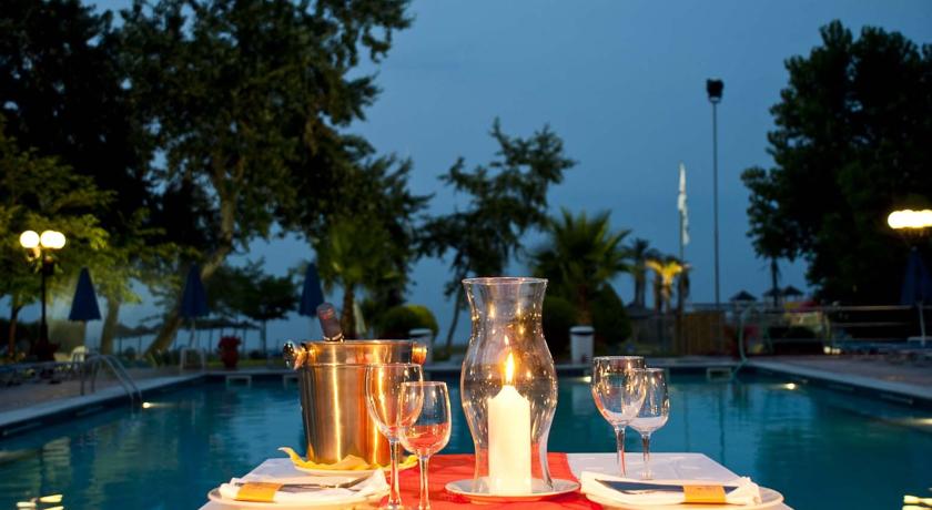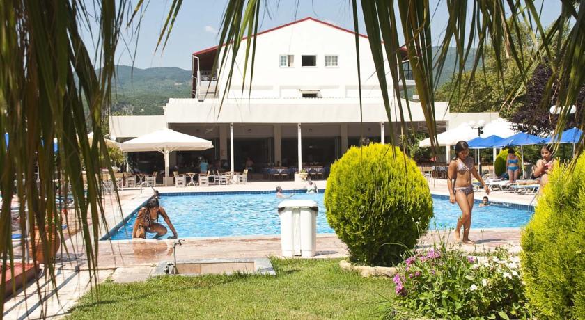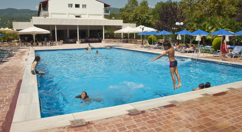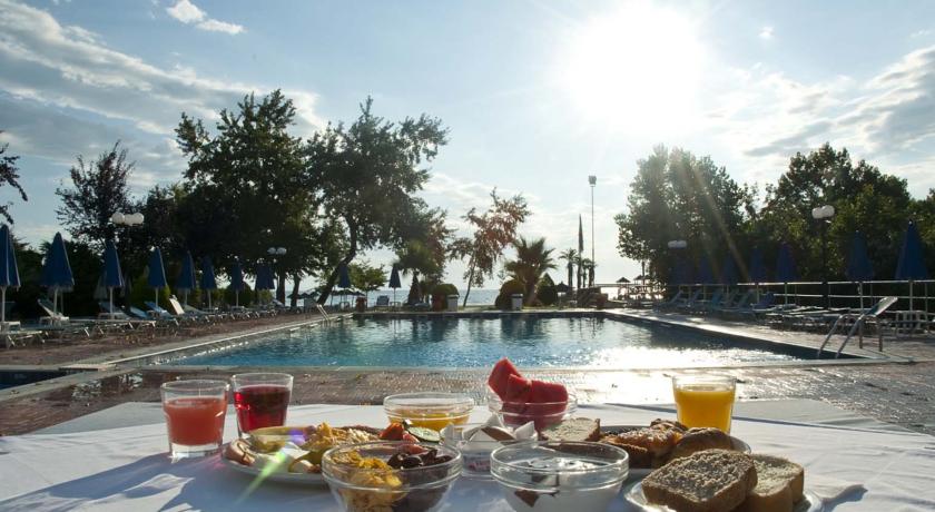 Ky hotel ndodhet rreze mait Olimp. I pozicionuar ne nje nga zonat me piktoreske, me te bukura dhe interesante te Pieria-s, ky hotel eshte nje nder zgjedhjet me te mira per pushimet tuaja.Hoteli rrethohet nga gjelberimi, I cili te dhuron relaks. Ne ambientin jashte ndodhet pishina me cadra dhe shezllona per te marre diell.Afer hotelit ndodhen zona arkeologjike te cilat jane te kendshme per tu vizituar ne pasdite. Ky hotel eshte ideal per pushime familjare.Akomodimi: Hoteli ofron dhoma me hapesire te gjere, te cilat ofrojne komoditet dhe relaks. Secila prej tyre eshte e pajisur me ballkon dhe pamje deti ose mali.Ne lehtesirat e dhomave perfshihen: Tv satelitor, ajer I kondicionuar, frigorifer, telefon me linje direkte, kasaforte, lidhje interneti.Ne restorantin kryesor te hotelit frohen ushqime tradicionale dhe mesdhetare. Ne barin buze pishines sherbehen kokteile si dhe snacks te ndryshme.Ne barin buze plazhit I cili ofron kokteile te mrekullueshme, mund te shijoni gjithashtu kafe dhe snacks. Cdo mbremje mund te shijoni pije nen tingujt e muzikes.Ne tavernen me pamje deti ofrohen specialitete te kuzhines Greke, barbeque, si dhe prodhime deti.Ne lehtesirat e hotelit perfshihen:Recepsion 24 ore, Sherbim ne dhome, pastrim dhome cdo dite, Fax, email, Sherbim zgjimi, lavanderie.