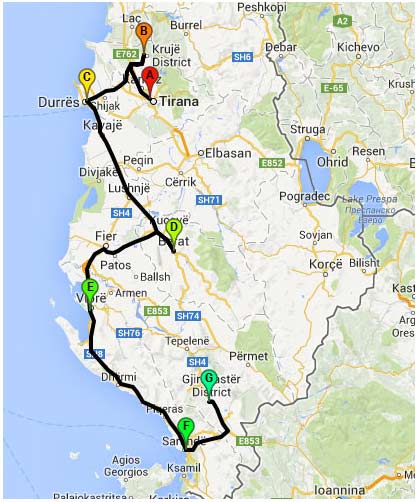 TIRANA-KRUJA-DURRES-BERAT-VLORA-SARANDA-GJIROKASTRA-TIRANA