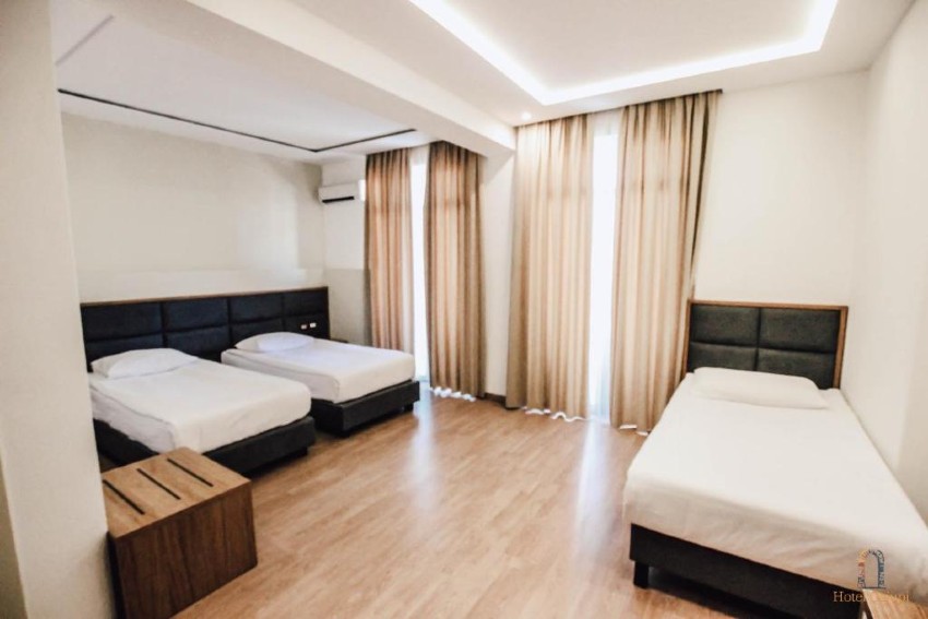The hotel has 3 different room types and a total of 9 rooms.