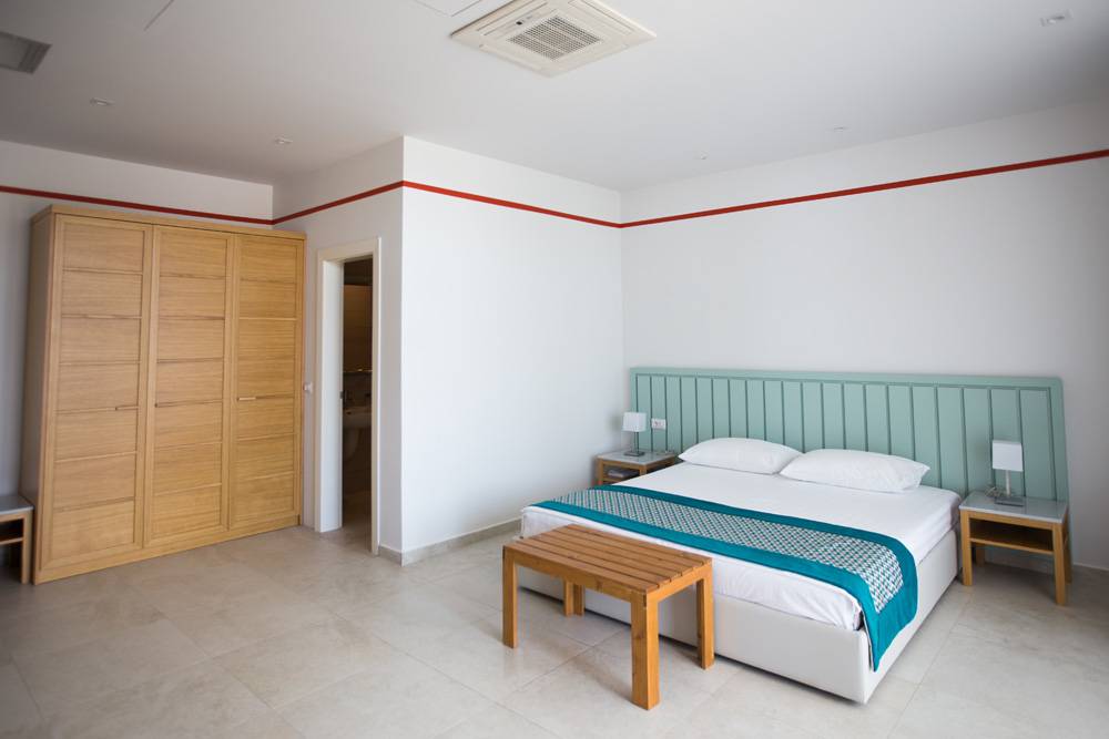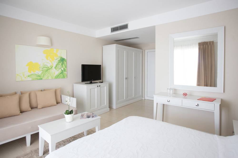Suites are located on the highest point of the hill from where the sea tasted wonderfully. They consist of two rooms (lobby, room) each with TV and terrace.All rooms offer the following amenities: LCD cabel TV, mini fridge, air conditioner, hairdryer, Personalized towels, Wi-fi in the outdoor, Reception 18 hours, For leaving the baggage area, Exchange, water activities.