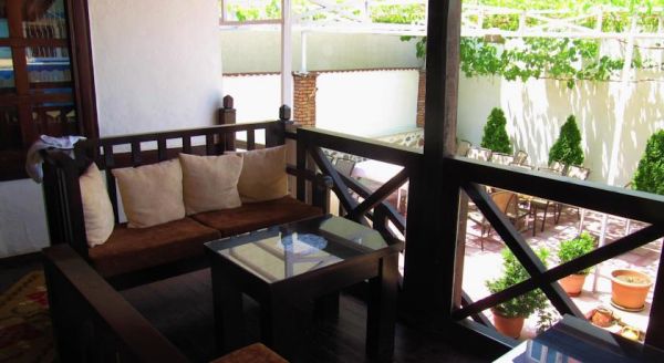 La propriété est située derrière la cathédrale orthodoxe, dans une rue pavée en pierre de galets et entouré de vieilles maisons. La réception dispose d'une cheminée devant des invités qui peuvent apprécier le vin, thé ou de la nourriture maison.