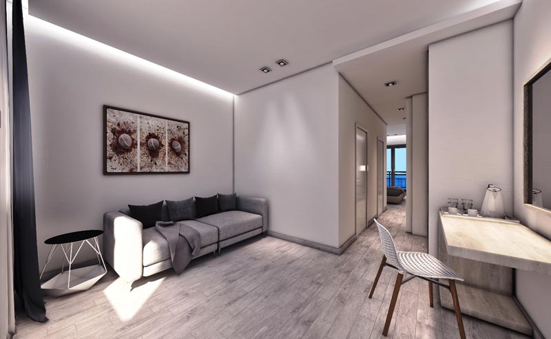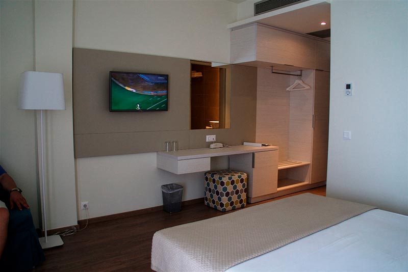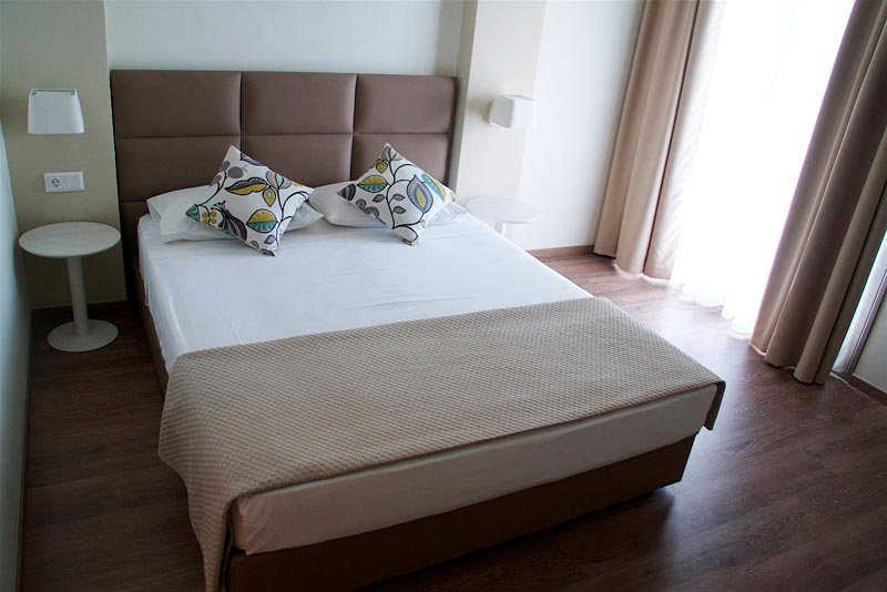Akomodimi:Tipet e dhomave:Dhoma dopjo me pamje nga parku; Dhoma dopjo me pamje nga deti; Dhoma treshe me pamje deti;Suita familjare deluxe.Te gjitha dhomat jane te pajisura gjithashtu me kondicioner, frigorifer dhe tv.