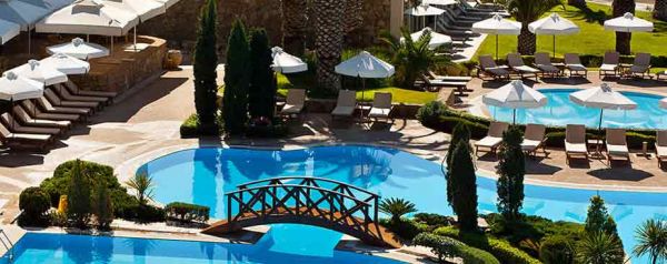 Me nje pozicion perfekt, perballe ujerave te kristalta te detit, ky hotel ofron pushime vertet realksuese dhe mbreselenese.Hoteli disponopn nje pishine me hapesire te gjere, qender Spa, restorante me ushqime nderkombetare si dhe ato tradicionale Greke.Ne restorantin poseidon ju de familja juaj do te shijoni gatime bufe, ndersa ne restorantin tjeter ne veranden me pamje deti, do te shijoni ushqime te perzgjedhura te guzhines tradicionale Greke si dhe asaj mesdhetare.Akomodimi:Te gjitha dhomat me hapesire te gjere jane te arreduara me elegance dhe ofrojne komoditet. Ato kane pamje te mrekullueshme deti ose nga kopeshti i gjelberuar. Te gjitha jane te pajisura me tarace ose ballkon.Ne lehtesirat e hotelit perfshihen: Ajer i kondicionuar, Tv me ekran te sheshte, kanale satelitore, Ajer i kondicionuar, ngrohese, DVD, mini bar, kasaforte, aparat kafe, caji, aparat ekspresi, tharese flokesh, robdishamber, pantofla, banjo me vaske dhe dush, ballkon ose tarace me pamje.
