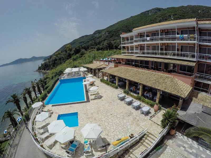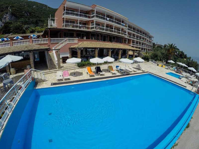 Hoteli ndodhet 11km distance nga qendra e Korfuzit.Dhomat jane te arreduara ne menyre komode dhe moderne. Ne lehtesirat e tyre perfshihen: Banjo me dush, tharese flokesh, kasaforte, telefon, Internet Wi-Fi, Tv satelitor, frigorifer, ajer I kondicionuar, ballkon ose tarace.
