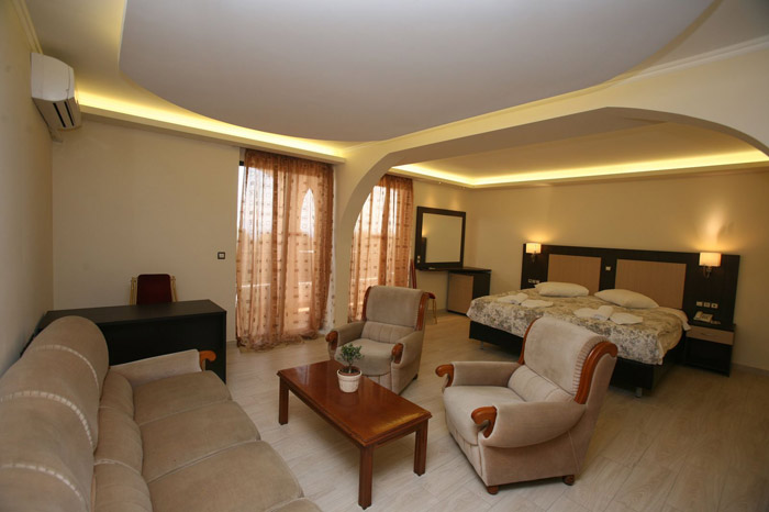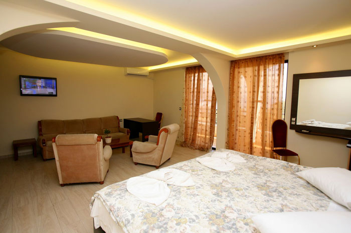 Dhomë familjare ku mund të akomodohen 3 të rritur dhe 1 fëmijë 0-13.9 vj . Çmimi i llogaritur për 3 të rritur + 1 femije 0-13.9 vjec.
