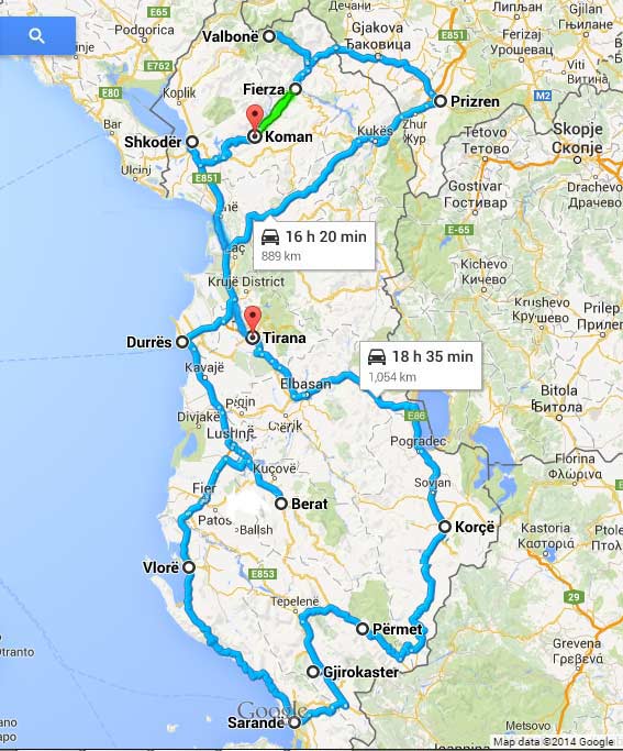 TIRANA - SHKODER - VALBONE - PRIZREN – DURRES- BERAT – VLORE – SARANDE - GJIROKASTER - KORCE – TIRANE.