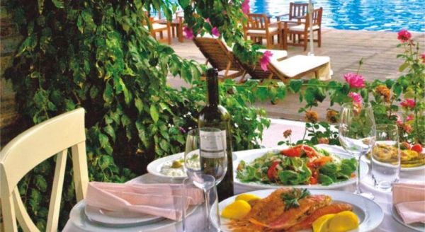 Restoranti kryesor I hotelit sherben ushqime tradicionale Greke, dhe disponon nje tarace te gjere. Ne barin buze plazhit do te shijoni gjithashtu pije te ndryshme freskuese. Nete Teme si dhe shumellosjshmeri aktivitete ndryshme organizohen disa here ne jave.