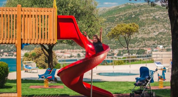 Vendi perfekt per te kaluar pushimet e veres afer gadishullit Babin Kuk dhe qendres se Dubrovnikut. Palma , pisha dhe peme te tjera jane te vedosura tek bari I tarraces duke sjelle freski gjate veres se gjate se Adriatikut. Shijoni romancen midis qirinjve tek nje nga restorantet e hotelit ku kuzhina Dalmate dhe ajo internacionale do ju shoqerojne. Plazhi me guricka ndodhe shume afer me hotelin, gjithashtu pishina e jashtme per femije dhe te rritur. Zbavitje dhe animacione: Disa here ne jave muzike live, programe dhe aktivitete per femije te vlefshme pergjate gjithe sezonit. Parukeri, parking pa pagese, dyqan suveniresh, Internet, sherbim informacioni, sherbim dhome etj