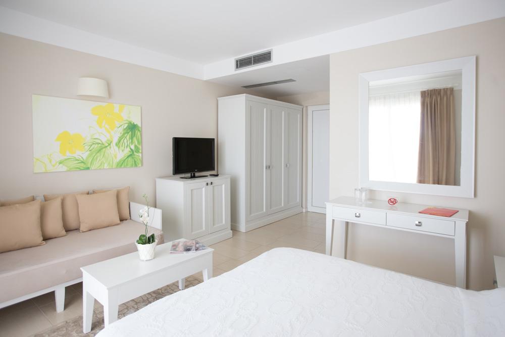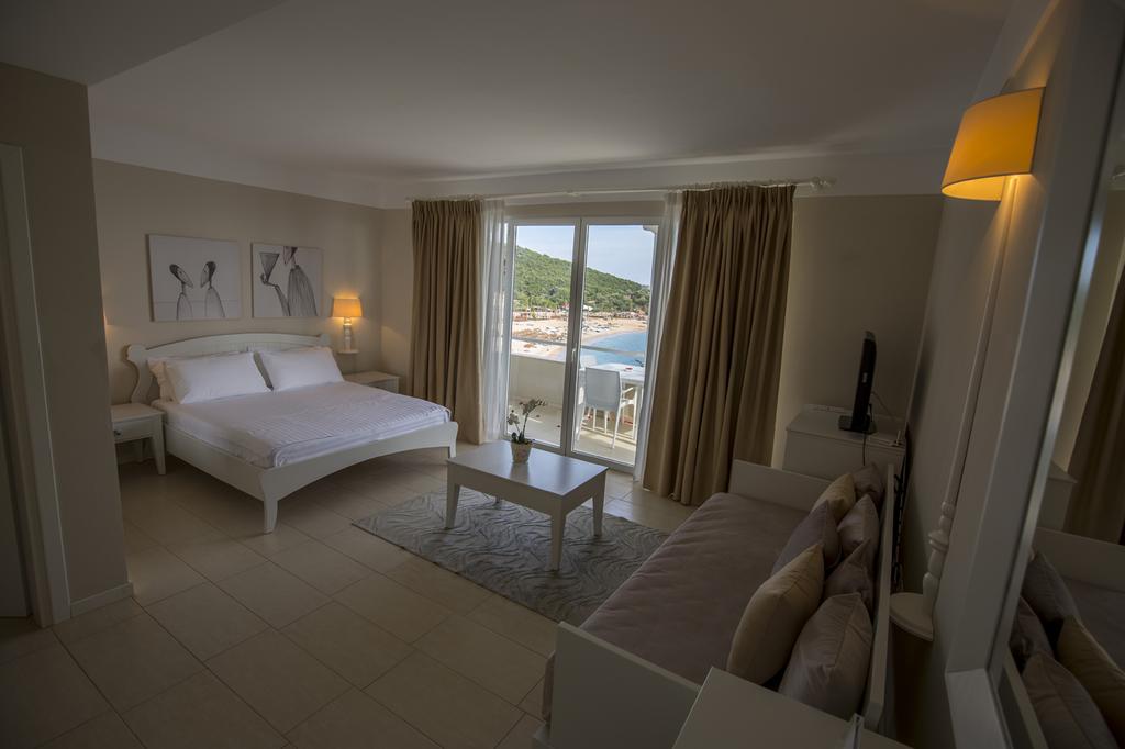 Dhoma premium, Suita e Junior Suita te stilit modern me pamje mbreselenese te detit ne gjirin e Folie Marine. Sapo kalon fshatin e vjetër Vuno në një degëzim rruge përmes gjelbërimit plot aromë të pemëve, në mes të shkëmbinjve të lartë. Hoteli ndërthur me elegancë dhe hijeshi arktitekturën e stilit mesdhetar me stilin modern. Ne resort jane vene ne dispozicion te klienteve tane, 4 beach bare (familjar, lounge, bar ne pishine dhe beach bar kryesor) si dhe 3 restorante te guzhinave te ndryshme (taverne, piceri, mesdhestare, gourme, sushi) salla per organizime konferencash dhe mbledhjes me te ngushta biznesi, nje pishine, Club-i veror i mirenjohur si dhe sherbimet te larmishme ne zonen relax & beauty (SPA).