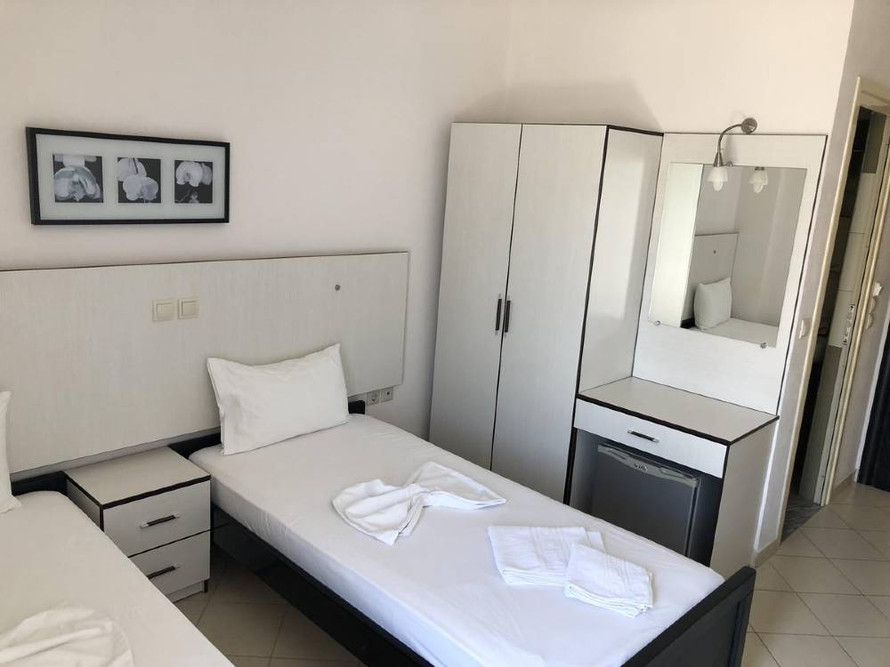 Dhome treshe: Duke filluar nga 25 metra katrorë dhomat janë të dizajnuara me standardet më të fundit të komoditetit dhe relaksimit. Shtrati dopio dhe tek.