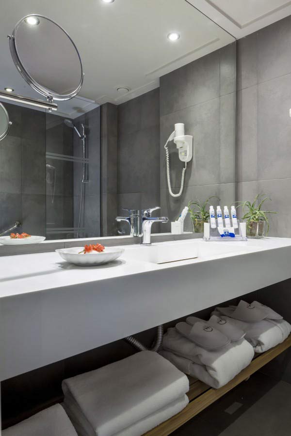 Telephone, TV-Ekran te sheshte, Satellite channels, WIFI Falas, Kondicioner, Coffee/Tee maker, Vaske, Kabine dushi, Robdishamber, Tharese Flokesh, Pandofla, Mini bar, Kasaforte, Ballkon